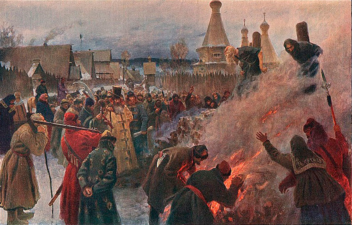 „ Изгарянето на протойерей Авакум “, Пьотър Мясоедов, 1897 г.Държавен музей на историята на религията, Санкт Петербург