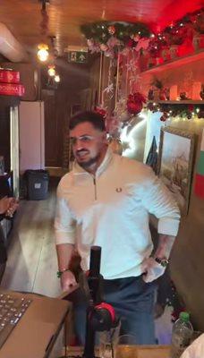 Олимпийският, международен и европейски първенец изненадващо се появява в събота вечерта в две заведения в британската столица, където доминират както националните песни, по този начин и чалга частите.
