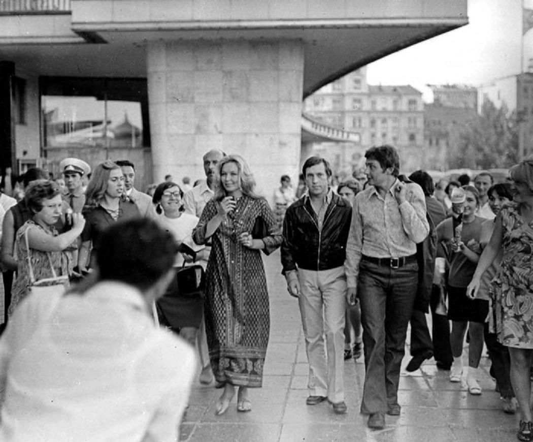 Станислав Говорухин, Марина Влади, Владимир Высоцкий и Всеволод Абдулов; Москва, VIII Международный кинофестиваль, 7-21 июля 1973 года