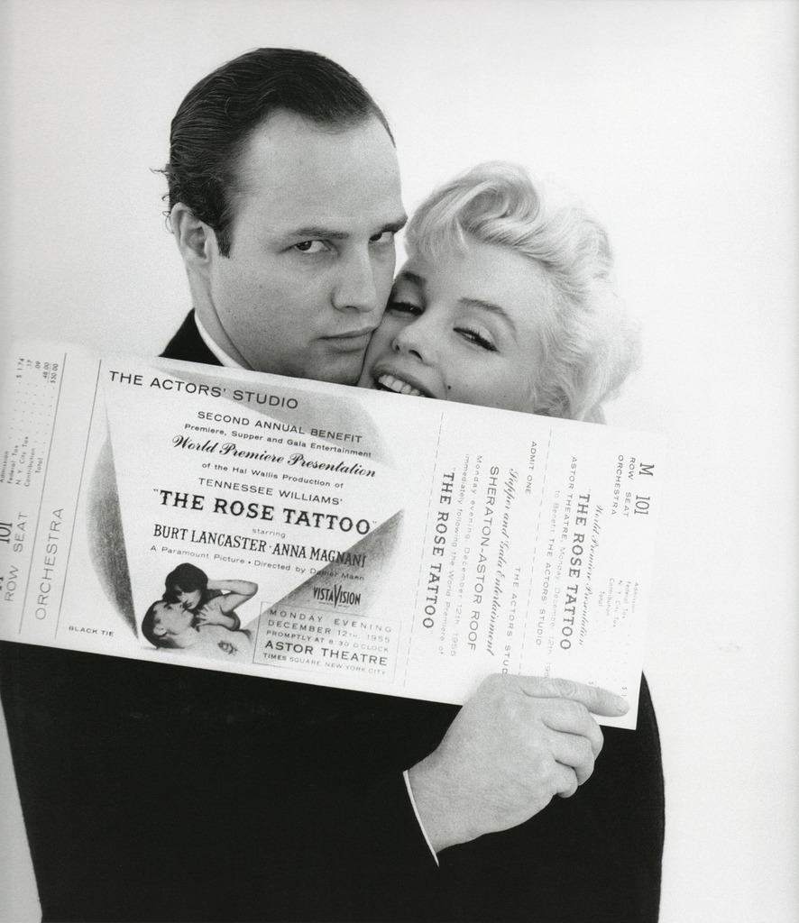 (Marilyn Monroe and Marlon Brando at the premiere of Rose Tattoo, 1955)