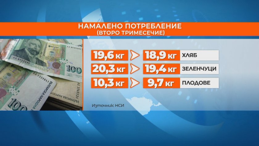 Статистиката регистрира че, българите с изключение на, че обедняват, тъй като приходите им изостават от цените, ядат по-малко самун, зеленчуци и плодове.
