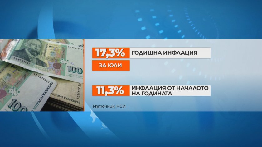 На годишна база инфлацията у нас доближи 17,3% и по този начин реализираме връх за последните 24 години. А единствено от началото на годината растежът е 11,3%. Месечната инфлация е 1,1%. С това индикаторите се приближават до тези от 1998, когато България се справяше с последствията от хиперинфлацията.