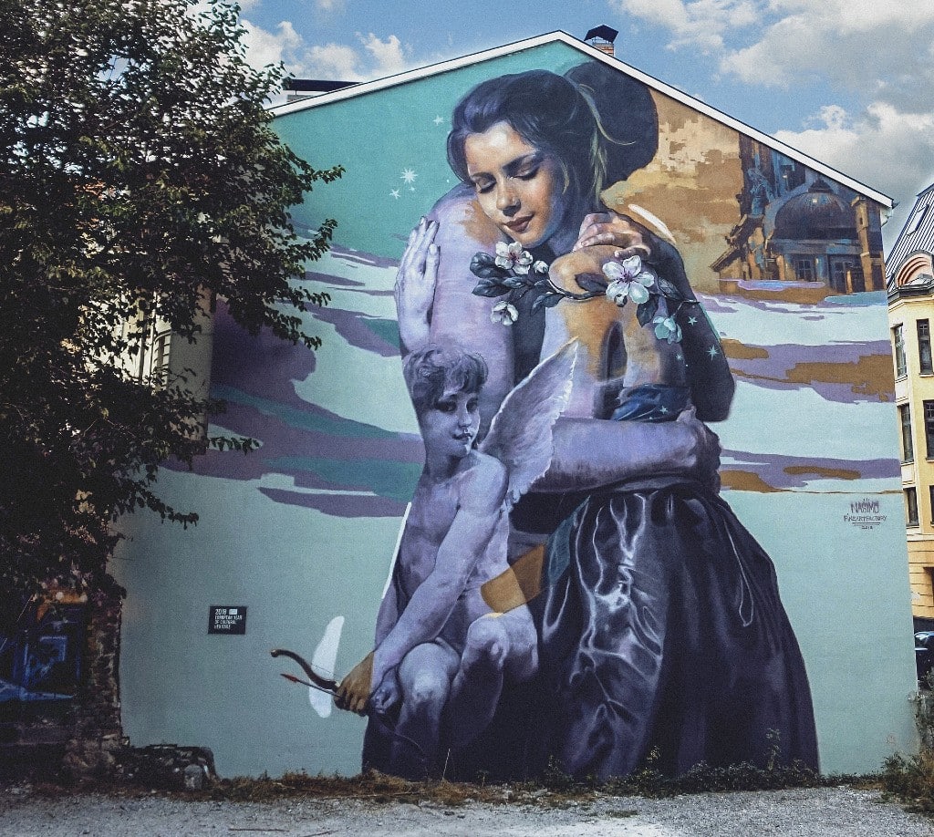 Едно от най-романтичните места в София е графитът „ Прегръдката “. Нежната комбинация е дело на художника Насимо и се намира на ул. “Бачо Киро ”.