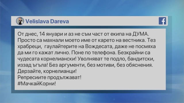 Ето позицията на вестника часове преди поста на Велислава Дърева: