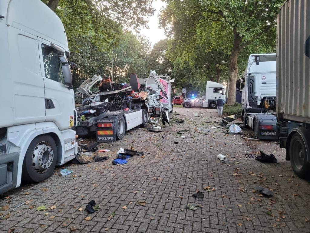 Кабина на камион избухна зрелищно, шофьорът оцеля по чудо СНИМКИ