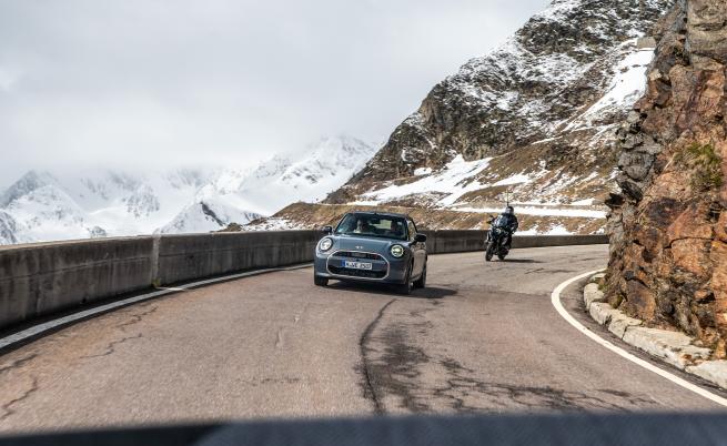 Проходът доближава до 2474 м, оптималният надолнище е 13 метра, а S-ките са тъкмо 30. Сняг на всички места към теб, отворен гюрук и... пай ръкав. Изживяване, което ще остане в съзнанието ми постоянно. Маршрут, по който MINI по традиция се усеща в свои води, тъй като историята на марката е обвързвана с прецизното пътно държание, с прецизното и бързо разказване на завоите.