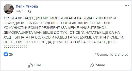 Общинският консултант от Демократична България Тома Белев обаче показа фотоси, за които се твърди, че са от профила на въпросната дама, които ясно демонстрират политическите й пристрастия.