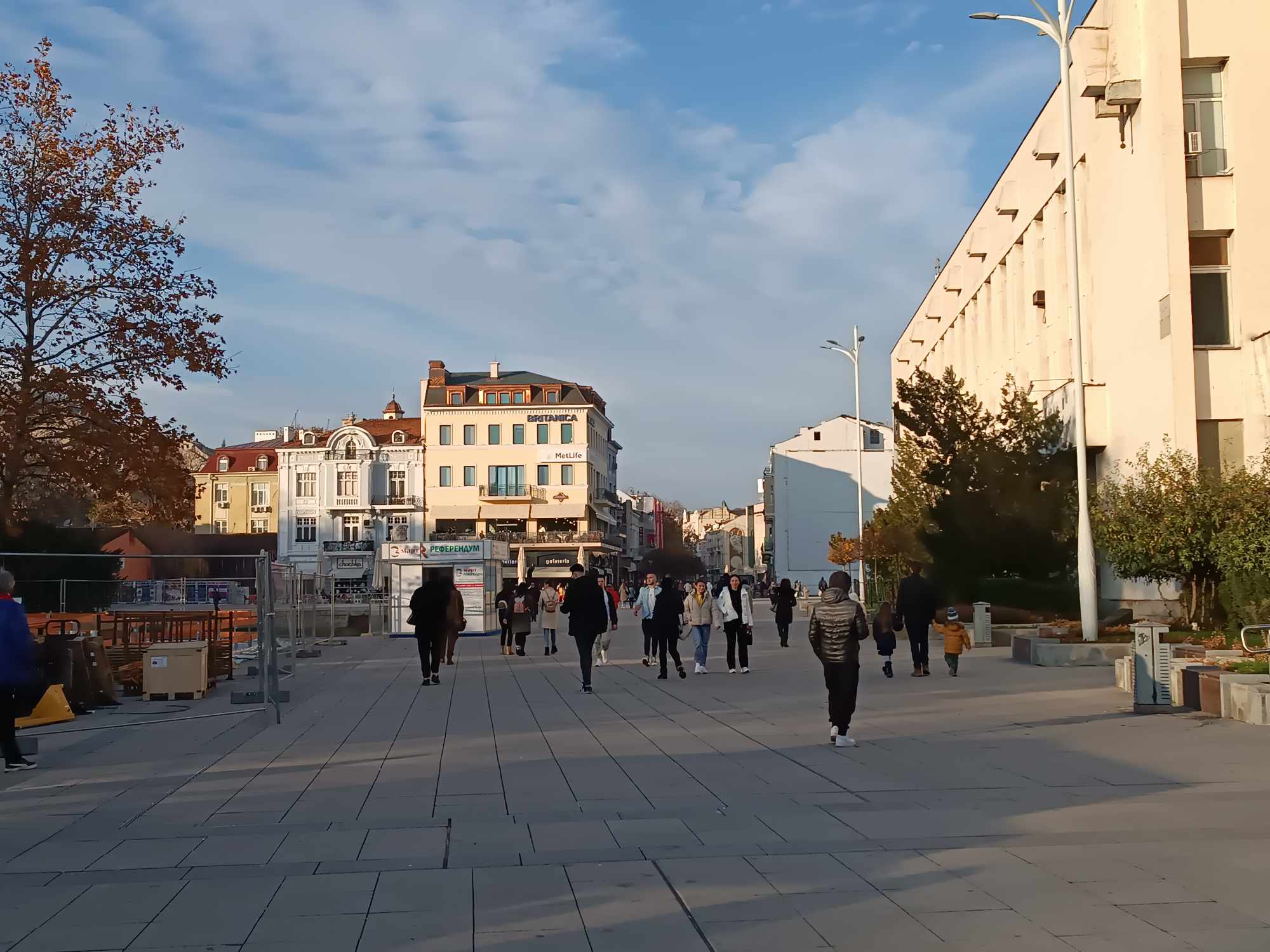 Празнично е към постройката на Централна поща, където към този момент втори ден ледената пързалка посреща гости. Част от нея към този момент е подготвена и в следобедните часове през днешния ден десетки младежи се забавляваха на оборудването, което се завърна в Пловдив след година неявяване.