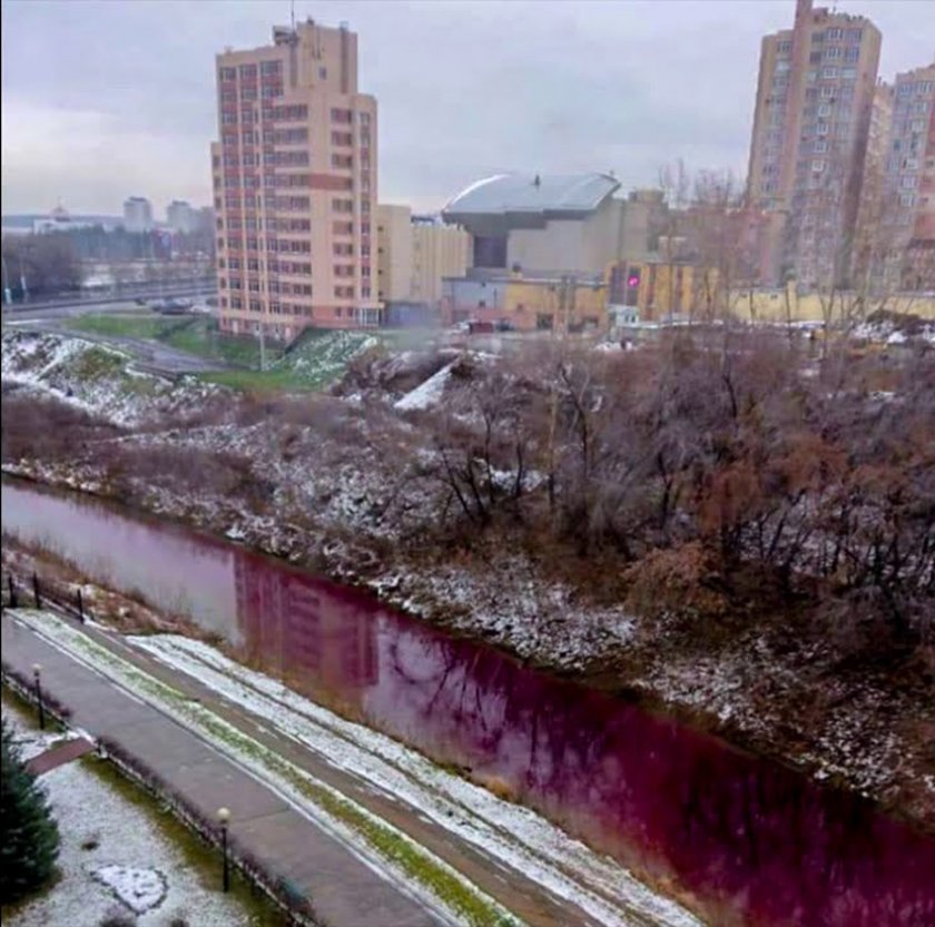 Кадри на " кървава река " обиколиха интернет. Те демонстрират река Искитимка в индустриалния град Кемерово в Южна Русия.