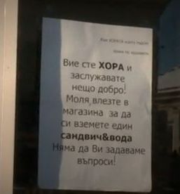 На витрината на сладкарницата й в Пазарджик още стои бележката с надпис: „ Вие сте хора и заслужавате положително! Моля, влезте в магазина, с цел да си вземете един сандвич и вода! Няма да задаваме въпроси “.
