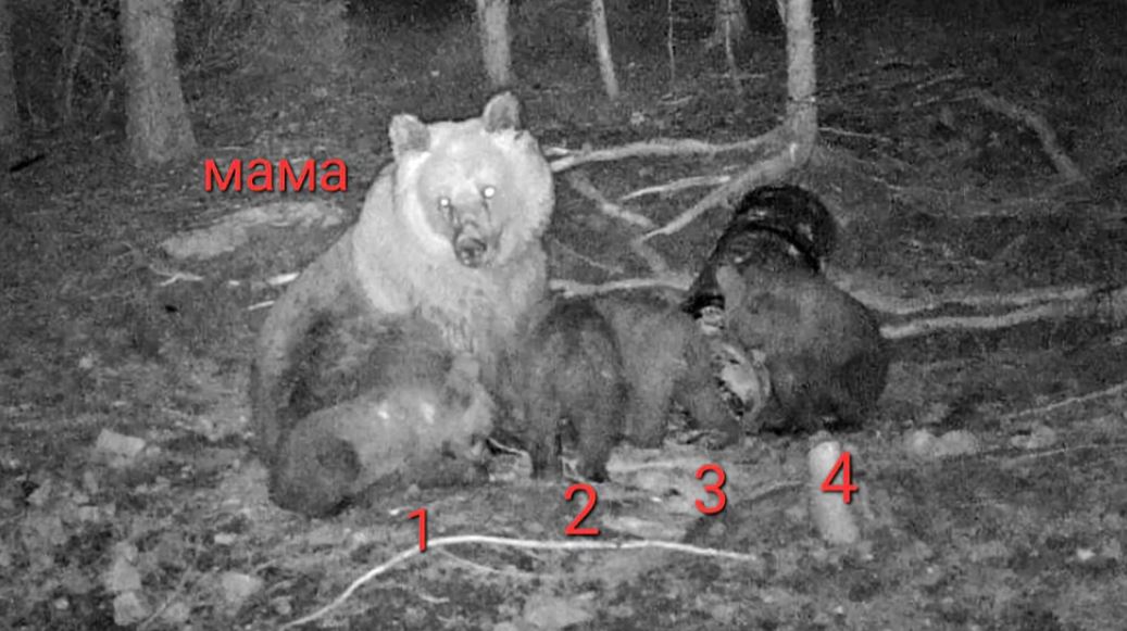 Кафява мечка роди 4 дребни мечета. Това демонстрират фотоси от фотокапаните на ловна тайфа “Карабалкан ”-Чепеларе, публикувани от Южноцентралното държавно дружество.
