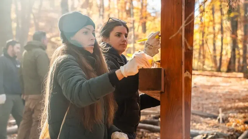 Доброволци от екипа на Kaizen Gaming в България оказват помощ за обновяването на осведомителни табели в Национален парк Витоша
