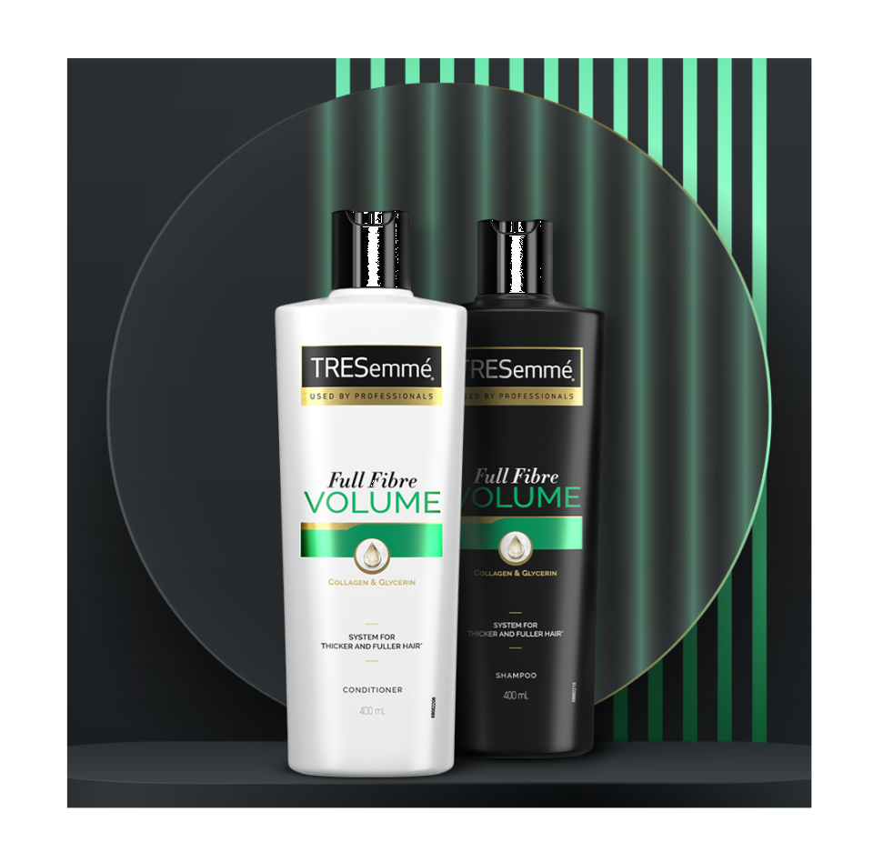 Според експерта серията TRESemmé Full Fibre е нашето оръжие за реализиране на мечтания размер. Продуктите в нея са два – шампоан и еликсир за тънка и фина коса.