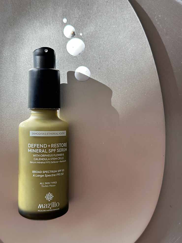 Защита и възобновяване С това значимо встъпление изяснявам за какво избрах защитния и възстановяващ серум Defend + Restore Mineral SPF 50 Serum на Mazillo за съществена стъпка в ежедневната ми козметична стратегия. Този серум за грижа за кожата е с минерални слънцезащитни филтри против двата типа лъчи - UVA и UVB. Тоест пази кожата от изгаряне, само че и от фотостареене и пигментация. Няма доктор, който да не упорства, че слънцезащитният е най-важният артикул в ежедневната ни рутина. Неоспорим факт е. Затова изборът й би трябвало да е акуратен и да дава отговор на самостоятелните потребности на кожата ви. Defend + Restore Mineral SPF 50 Serum на Mazillo с изключение на минерални филтри, съдържа и мощни антиоксидантни растителни стволови кафези, които възвръщат и пазят кожата от нездравословните фактори на околната среда, т.е. от състаряването, породено от стрес, нечист въздух, синя светлина и други Всичко това във формула, сходна на серум, която не оставя следи! Просто не забравяйте да разклатите преди да нанесете. Defend + Restore Mineral SPF 50 Serum на Mazillo е антиейдж SPF отбрана, подобаваща за всички видове кожа. Български съставки на международно равнище И по формулата “без едно мога, с едно не оставам ”, несъмнено на козметичния ми рафт от дълго време участват и други два продукта на Mazillo. Продуктите на марката за натурална козметика се отличават с това, че са съсредоточени и съдържат оптимално количество дейни съставки в това число и билкови и флорални води вместо по този начин наречните “филъри ”, каквато е елементарната вода, която няма съответна изгода за кожата. Съставките са български и са плод на съвременни новаторски технологии, комбинирани с обичайни способи. Плод на сходна иновация в биотехнологиите са растителните стволови кафези и концентрацията на дейни съставки, което е отличителното в българския козметичен бранд Mazillo.