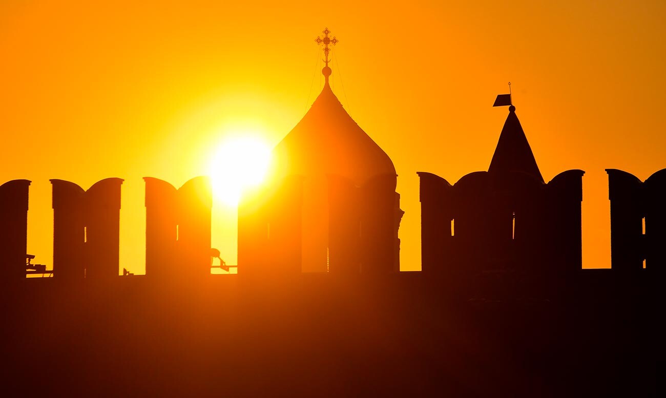Рамил Ситдиков/Sputnik Слънцето залязва зад стените на Кремъл.