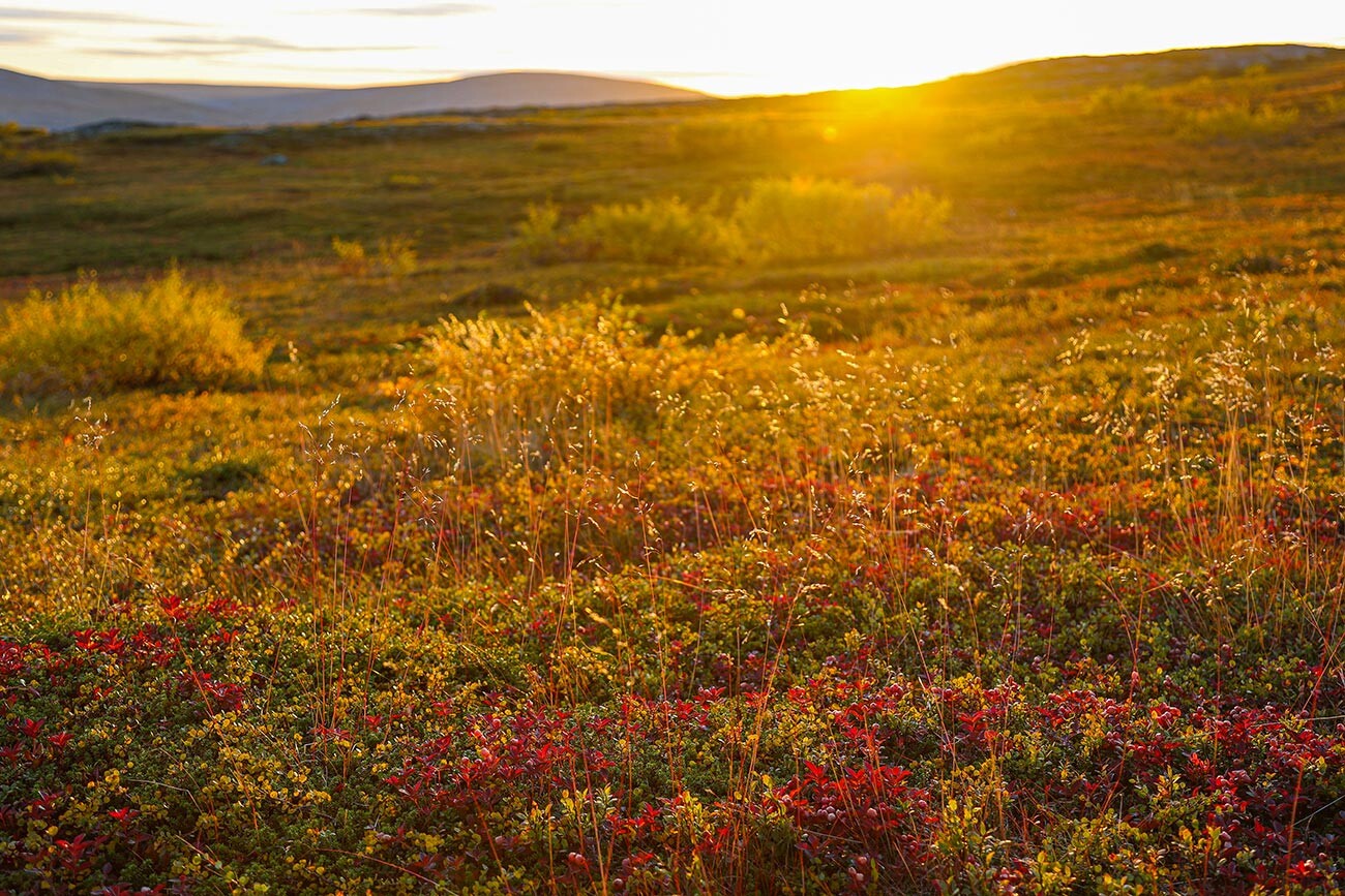 Есенните цветове стават още по-ярки при залез слънце в Мурманск.