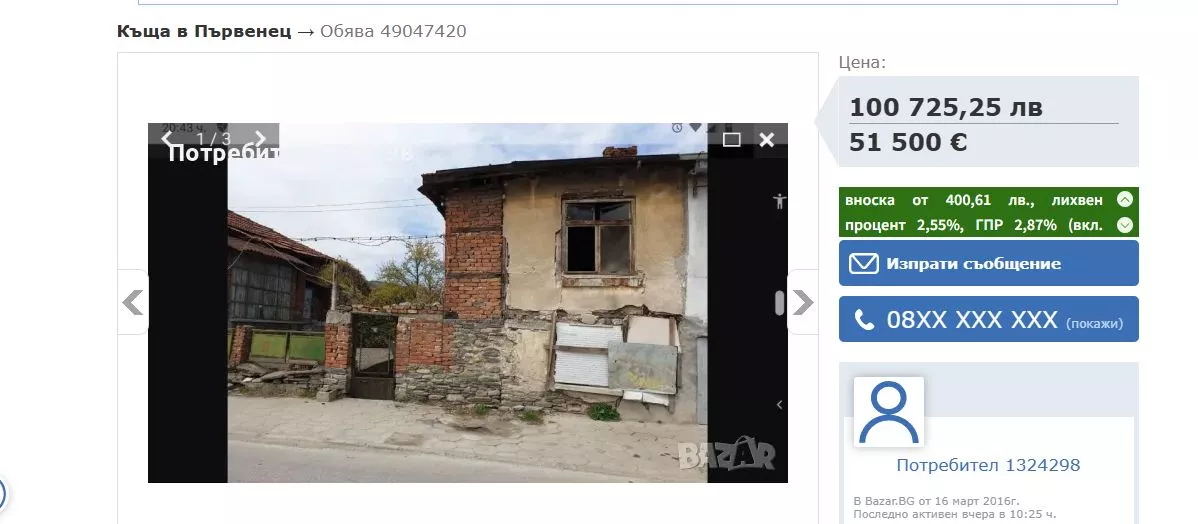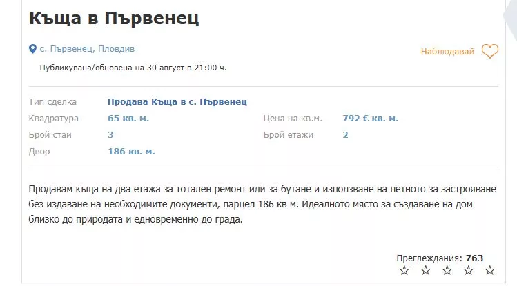 Междувременно обаче, в онлайн уеб сайтове за парцели къщата на улица „ Съединение “ №142 се предлага за продажба. Една от обявите, оповестена преди броени дни на 30 август, предлага " идеално място за основаване на дом близо до природата и по едно и също време до града. " В нея се загатва, че парцелът е 186 кв.м., а къщата, на два етажа, е " за цялостен ремонт или за побутване и потребление на петното за застрояване без издаване на нужните документи. " Цената надвишава 100 хиляди лв..