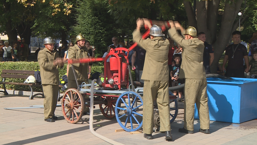 Как се гаси огън с помпа, теглена от кон и каруца - демонстрация в Русе по повод празника на пожарната