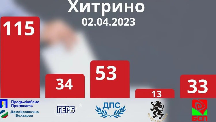 Подкрепата на изборите за “Промяната ”в община Хитрино е спазарена против присвояването на учебните земи. Това беше разкрито още на изборите предходната година, когато най-високият избирателен резултат на Политическа партия беше в Хитрино-49,82%. На 2.04.2023 година ПП-ДБ още веднъж имат рекордна преднина-44% от всички гласове в общината.