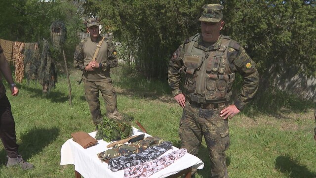 Предизвикателство за нас, публицистите е с просто око да открием измежду дърветата в гората къде има снайперист. Международният редактор на bTV Цветана Балабанова тества специфична каска, която се слива с гората.