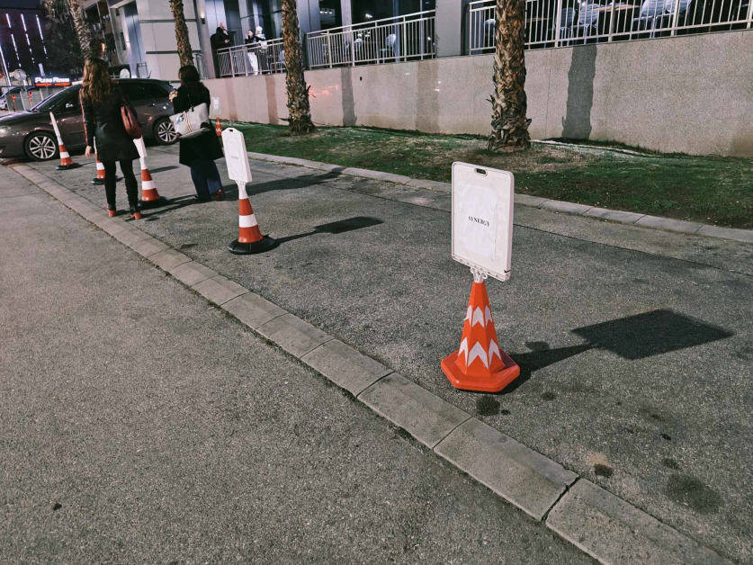 Как се прави частен VIP паркинг върху тротоар под офис център? Този въпрос заложен наш четец, който се е сблъскал с неуместната обстановка. Той е посетил „ Колодрума ” за едно от представленията, като вървейки към залата се е принудил да слезе на пътното платно и то с 3 деца, тъй като на тротоара от северната страна е имало спрели коли и антипаркинг конуси.