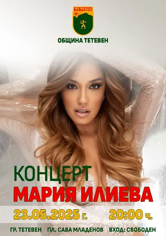 Както всяка година, Община Тетевен приготвя богата стратегия по случай месец май, като 24 и 25 май са измежду най-значимите дни. Тази година, изненадата в програмата за майските празници неизбежно е концертът на Мария Илиева, който притегля вниманието към себе си и се чака да събере стотици почитатели на поп музиката. Събитието ще се организира на 23 май от 20.00 ч. на пл. „ Сава Младенов “ в град Тетевен.