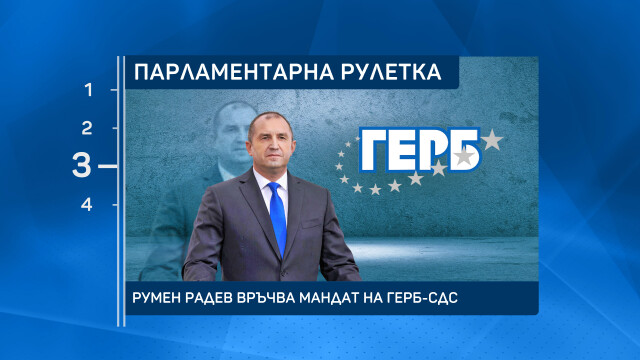 Ако не съумеят, президентът връчва изследователски мандат на втората партия - в тази ситуация ГЕРБ, а в случай че и те се провалят, Румен Радев ще избере да връчи директория с управнически мандат на трета групировка, този път по негов избор.