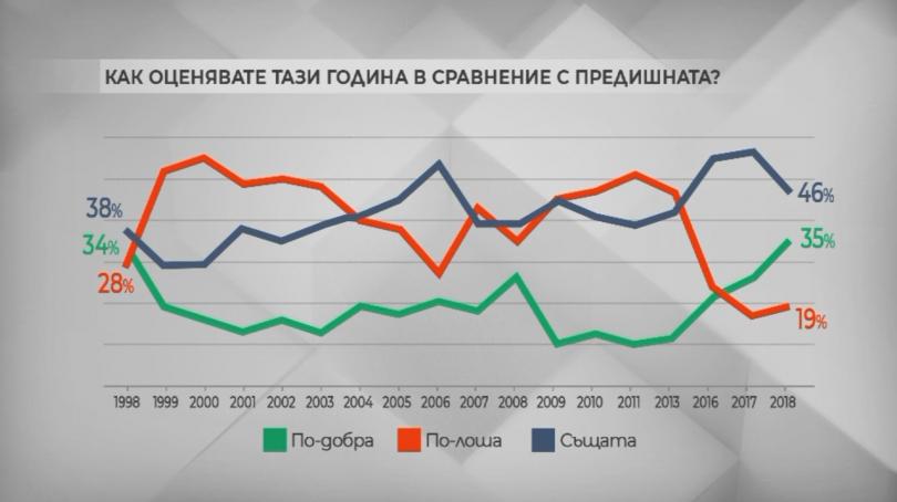 46% считат, че 2018 година е същата като миналата. 35 на 100 мислят, че е по-добра, а 19% считат, че е по-лоша от миналата.
