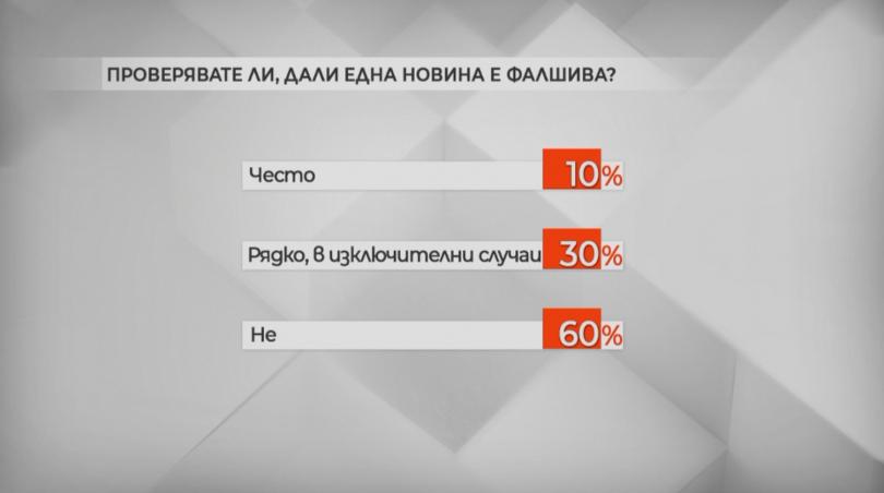 60% не ревизират дали една вест е подправена, 30 на 100 го вършат, а 10% споделят, че ревизират постоянно.