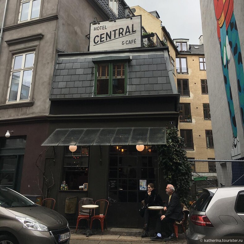 Едностайният хотел Central & Café се намира над най-малкото кафене в Копенхаген.