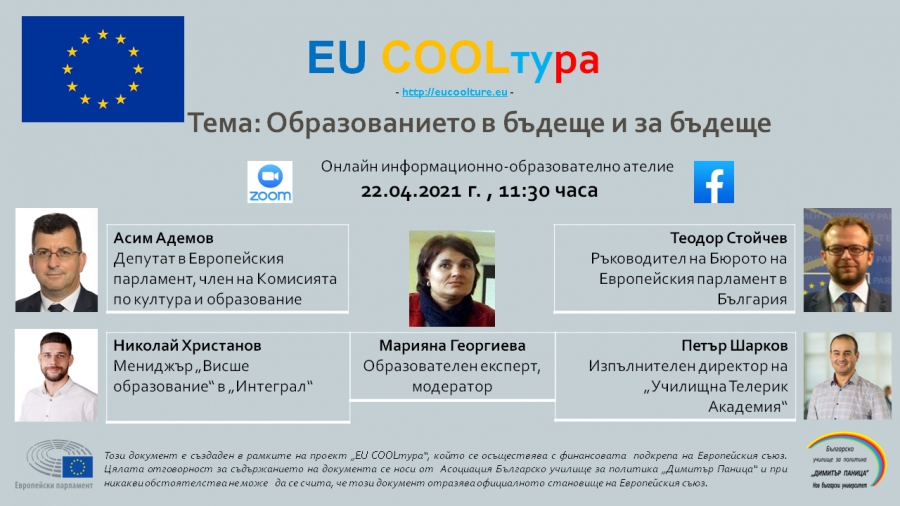 Какви са най-хубавите способи и принадлежности за приемане на познание? Къде е България в това отношение? Къде може да бъде – отговорите научете в онлайн информационно-образователното ателие „ Образованието в бъдеще и за бъдеще ”, част от от плана " EU COOLтура ".