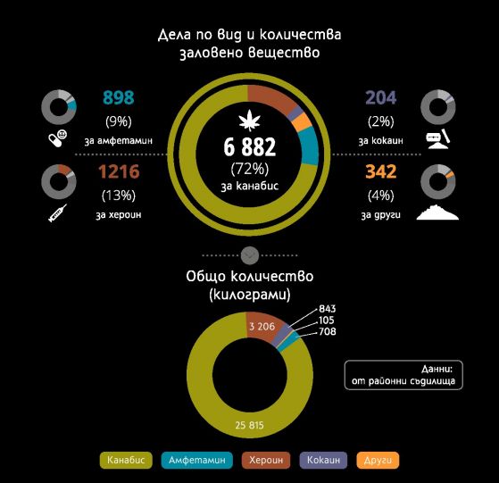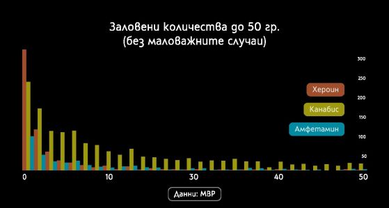 Това значи, че в най-малко 4 от всеки 5 случая на хванати със неразрешени субстанции, става дума не са разпространители, а държатели и ползватели на несъществени количества .