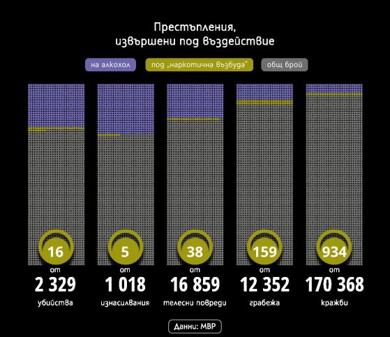 Според данните на Министерство на вътрешните работи за проучвания интервал са открити 428 375 извършители на Наказателния кодекс. Сред тях едвам 3699 са тези, направили закононарушението под наркотична възбуденост.