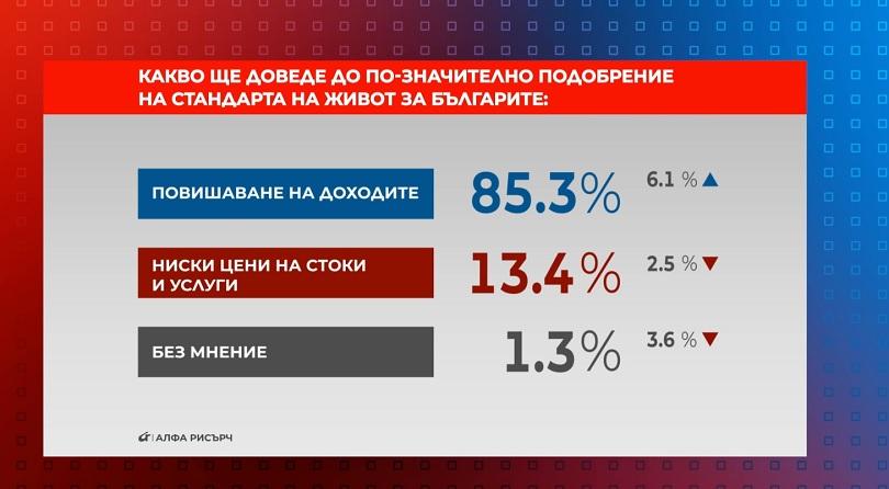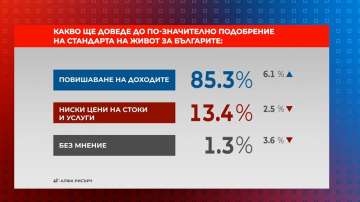Какво ще докара до по-значително усъвършенстване на стандарта на живот за българите - това беше тематиката за полемика в " Референдум ". Според данните от формалното допитване на " Алфа рисърч ", 85.3% от интервюираните са на мнение, че е належащо повишение на приходите у нас. 13.4% са за понижение на цените на стоките и услугите, а 1.3% нямат мнение по въпроса. Дебатът по тематиката в предаването гледайте ТУК!