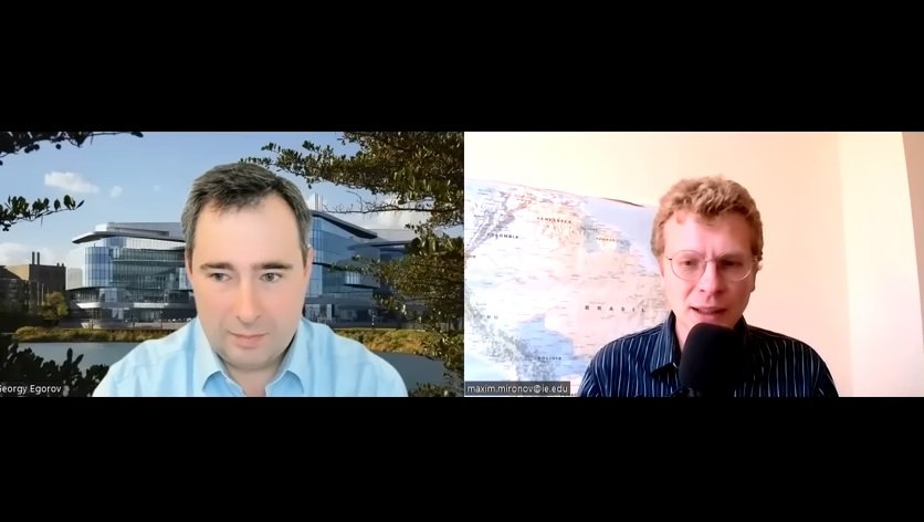 Максим Миронов, професор по финанси в IE Business School, беседва за това в своя YouTube канал с Георги Егоров, експерт по доктрина на игрите (дял от приложната математика за проучване на интервенциите, който учи стратегически математически модели и взимането на решения в конфликтни ситуации) и професор в Kellogg School of Management към Северозападния университет.