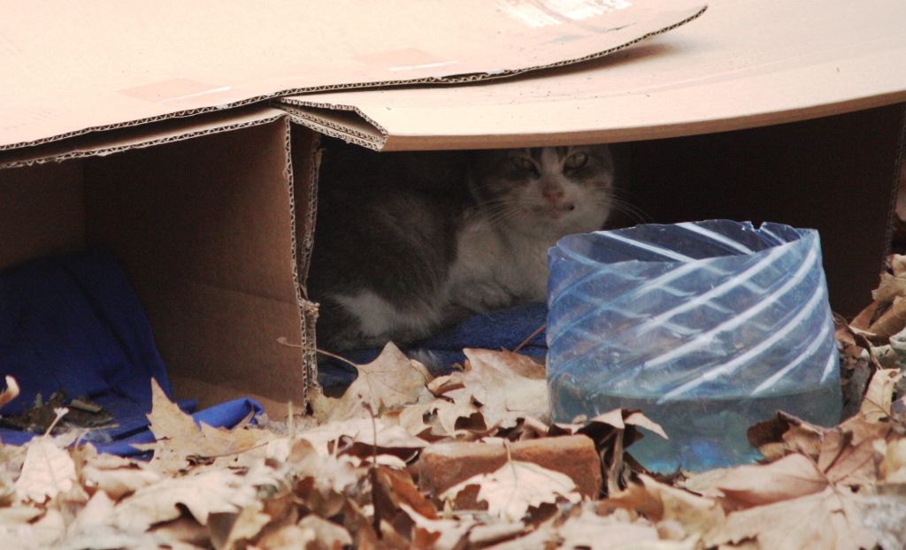 Какво й би трябвало на една улична котка да оцелее през зимата? Не е кой знае какъв брой доста. На първо място храна, което значи или отворен резервоар за боклук, или хора, които да изпитват страдание към бездомните животни и да оставят храна на избрани места.