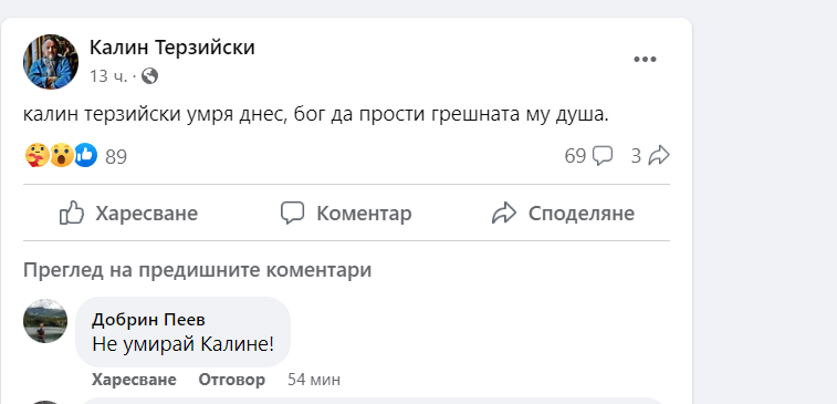 Калин Терзийски умря през днешния ден, господ да елементарни неверната му душа.