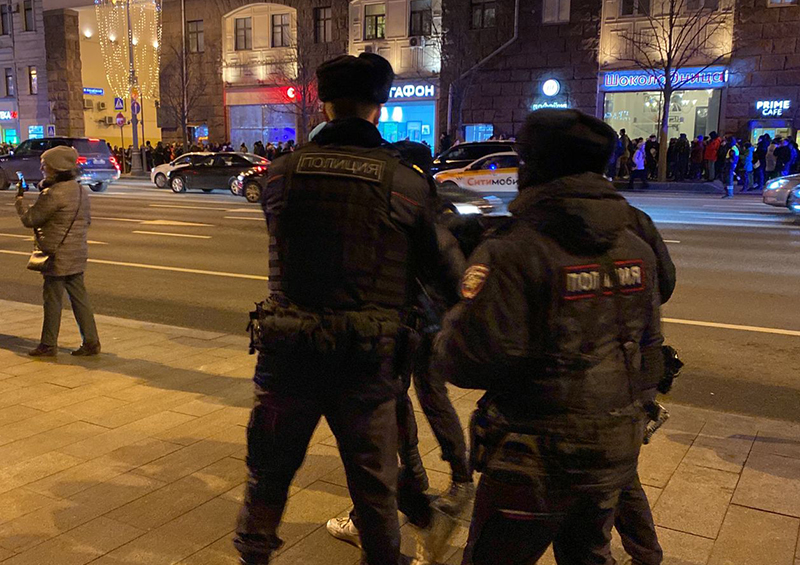 Най-малко 596 души са арестувани в Москва, а минимум 274 души в Санкт Петербург. Сред арестуваните има деца и пенсионери.