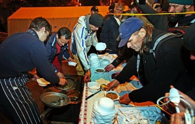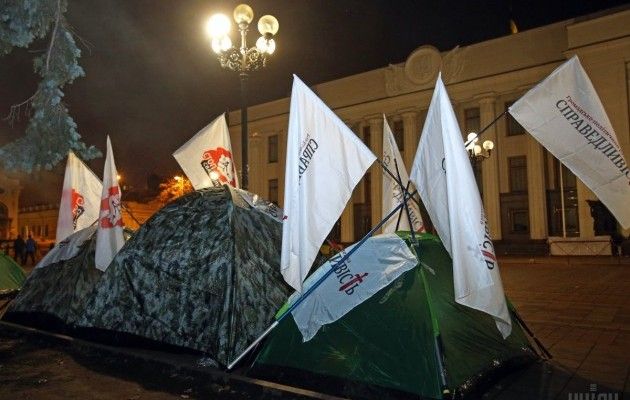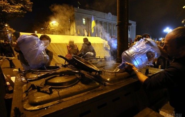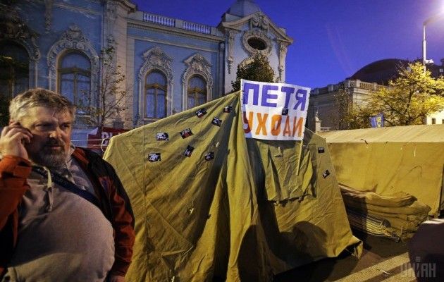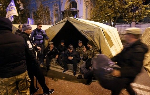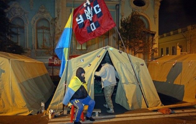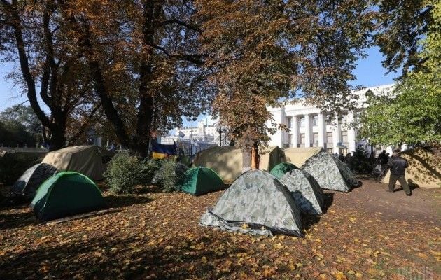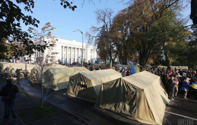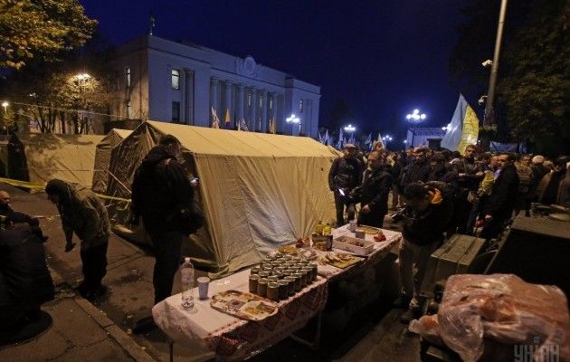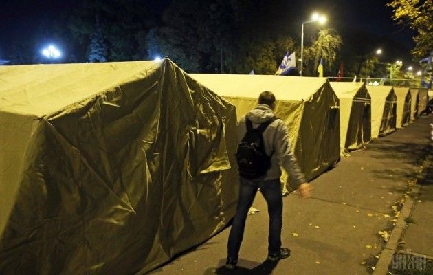 Бързо и отработено, т.е. след очевидно трениране и с опит, бяха вдигнати палатки - нови, от здрав и пълен брезент. " Ще стоим тук до край, до момента в който Върховната рада не се откаже от имунитета на депутатите, не одобри закон за антикорупционен съд и не промени закона за изборите ", разяснява мъж в камуфлаж.