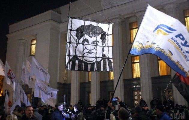 В центъра на площада, съвсем до постройката на Върховната рада, има група хора под знамето на придвижване " Справедливост ". Там е и Валентин Наливайченко - началник на придвижването и някогашен шеф на Службата за сигурност на Украйна, който бе освободен от служба през 2015 година от президента Порошенко. Тогава Наливайченко упрекна президента в корупция, а в този момент той е в съпротива.