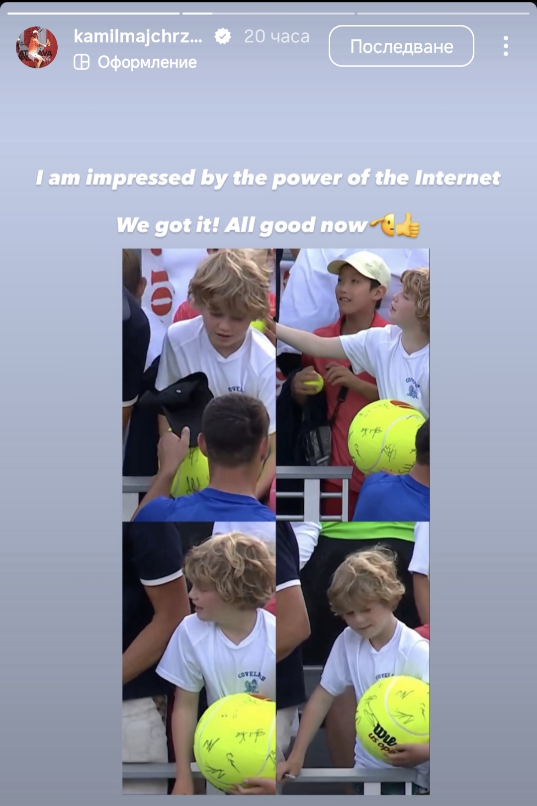 В последна сметка историята имаше щастлива развръзка, защото тениистът качи фотография с малчугана единствено към час по-късно, а детето към този момент беше със своя нов и изцяло подобаващ подарък.