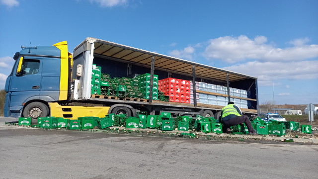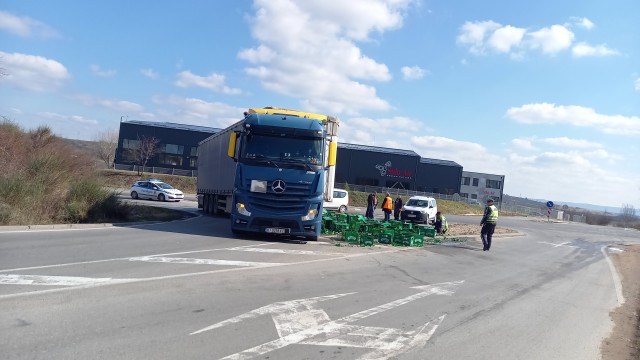 Камион с бира разсипа част от товара си. Инцидентът се случва към обяд на входа на Шумен от към с. Васил Друмево.