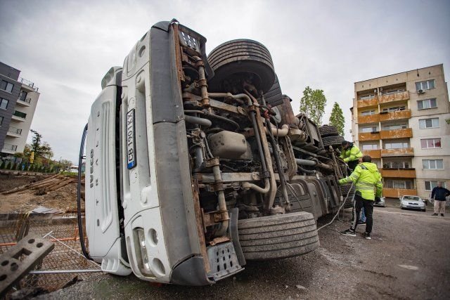 Камион с кран се обърна край строеж в София