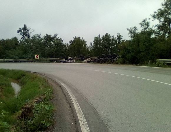 Камион се е обърнал по таван в канавката на пътя Видин - Монтана. За инцидента оповестяват очевидци.