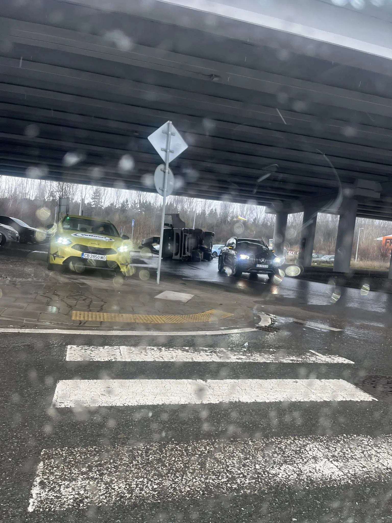 Камион се обърна странично в София през днешния ден. Инцидентът е станал на кръговото придвижване в кв. " Младост ".