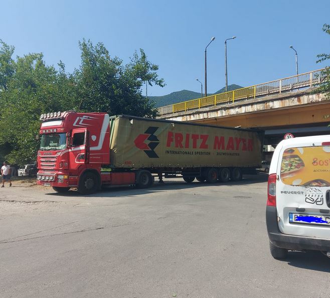 Камион се заклещи под мост във Враца. За случката алармират очевидци в обществената мрежа Фейсбук.