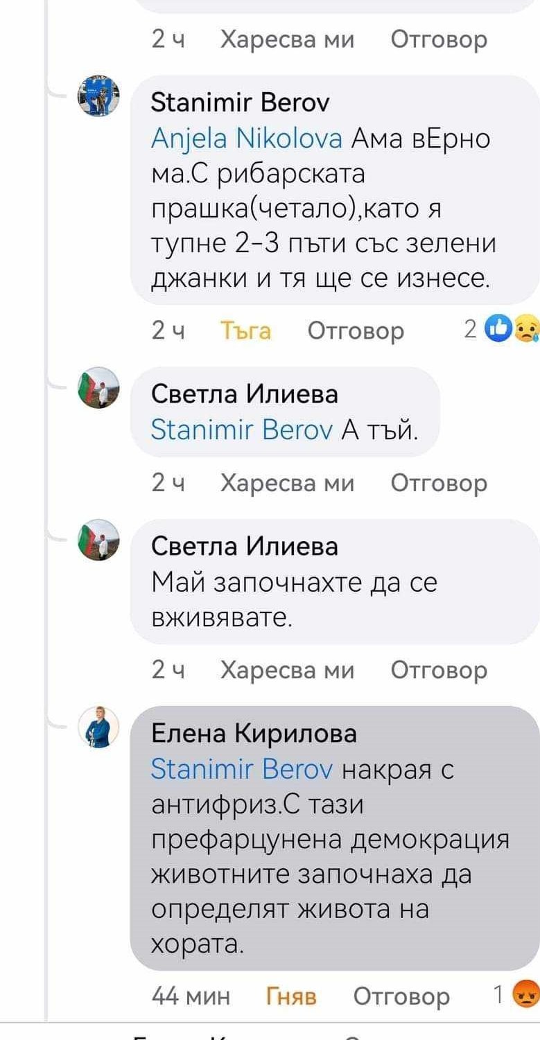 " Накрая с антифриз. С тази префарцунена народна власт животните започнаха да дефинират живота на хората " (б.а. правописът е запазен) - написа последователката на Костя Копейкин, която се е провалила на последните кметски избори и не е съумяла да стане градоначалник на с.Коиловци.