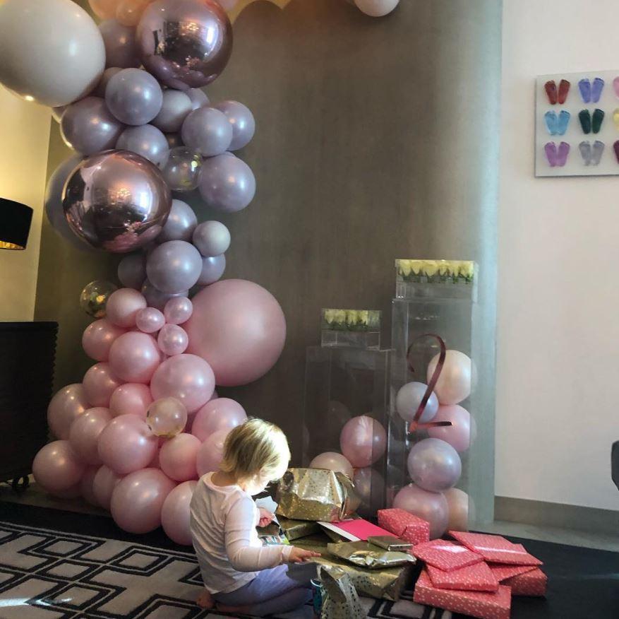 В друга фотография, оповестена в обществените мрежи, Кейн сподели част от тържеството за втория рожден ден на Айви, която е обградена от розови балони и доста дарове. В горния ъгъл на фотоса може да се видят отпечатъци на детски крачета в разнообразни цветове. Предполага се, че те са на дъщерите на британския национал.