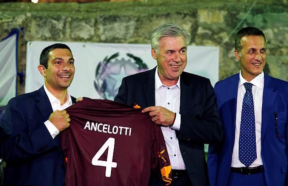 Карло Анчелоти тренира деца в Йерусалим след края на престоя си в немския футболен клуб Байерн (Мюнхен), който освободи италианския експерт предходната седмица след загубата с 0:3 от Пари Сен Жермен в Шампионската лига.