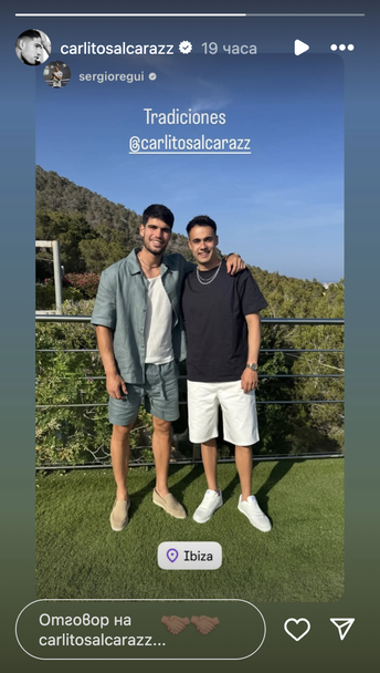 Регилон, който неотдавна беше освободен от Тотнъм след пет години в клуба, показа фотография в Instagram, на която театралничи с Алкарас на празненство острова. Надписът гласи „ tradiciones “, което на български значи „ обичаи “. Смята се, че двамата са доста близки и са чествали дружно триумфа на Алкарас на Уимбълдън предходната година.